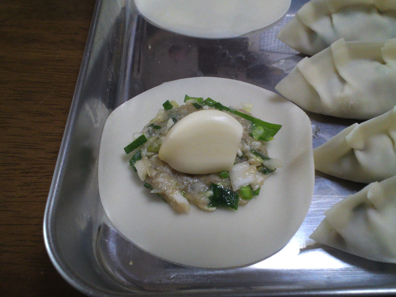 今回の餃子の中に、画像のすべてのニンニクが入ってる。