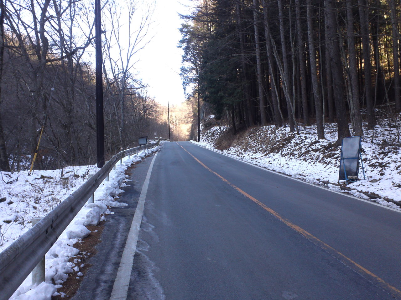 途中の売店のおばちゃんに「こないだ雪が降ってね。この先の峠は本当に寒いよ」って言われ。でも、ここまで来たら引き返しはしないが、足はプルプル。
